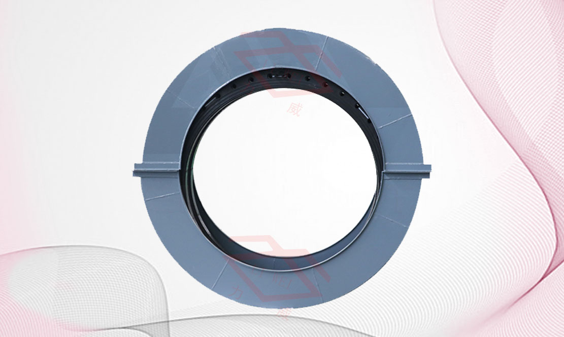 此地埋裝置為兩個(gè)半圓形中空組合而成,將橡膠接頭和管道平焊法蘭全部裝入體內(nèi),兩端設(shè)有兩半圓形小平面帶鋼騎于兩側(cè)法蘭外管壁,兩端立面支撐根據(jù)土層深度而定,足以承受外壓負(fù)重。